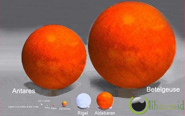 [lihat.co.id] - Bintang dengan variabel semiregular ini, selain menjadi salah satu bintang terbesar yang diketahui, juga merupakan bintang yang memiliki cahaya paling terang di konstelasi Orion. Bintang super raksasa berwarna merah ini besarnya sama dengan 950-1000 matahari, dan lokasinya terletak antara 643-146 tahun cahaya.