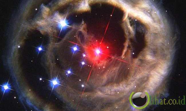 [lihat.co.id] - Berlokasi di konstelasi Monoceros, yang jauhnya 20,000 tahun cahaya dari matahari kita, bintang berwarna merah ini memiliki kurang lebih 400-1,570 jari-jari solar, hampir setara dengan radius orbit Jupiter.