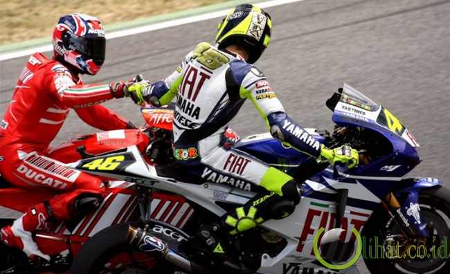 Jatuhnya Lorenzo membuat Rossi memenangkan duel sengit ini