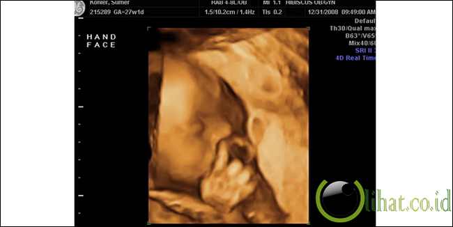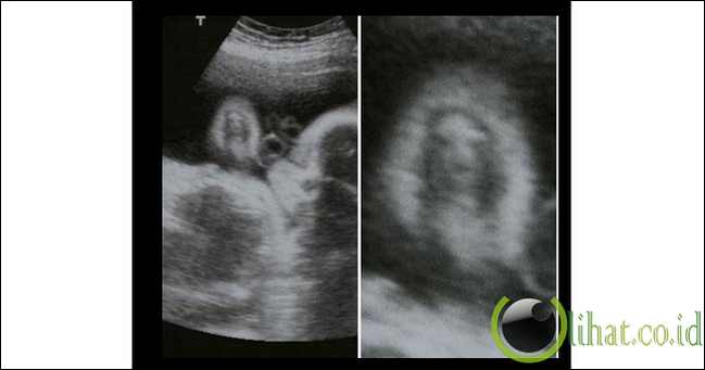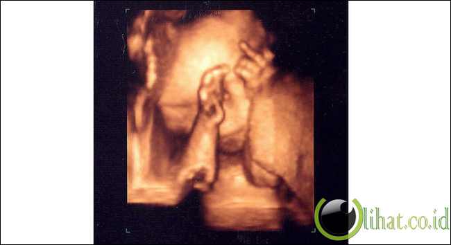 [lihat.co.id] - Ini USG 3-D menunjukkan janin 17 minggu tua menampilkan karakteristik yang sangat manusiawi:. Senyum.