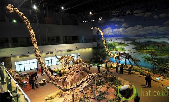 [lihat.co.id] - Museum lain yang juga menampilkan kehidupan zaman prasejarah adalah Zigong Dinosaur Museum di China. Atraksi wisata di China ini memiliki 18 rangka hewan purba yang lengkap.