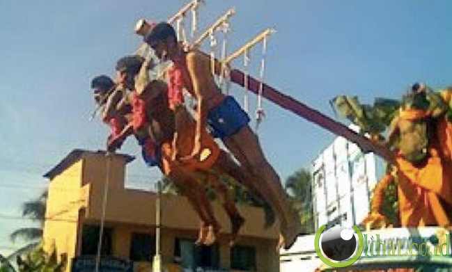[lihat.co.id] - Festival thookam melihat punggung Hindu setia tertembus kait tajam, para pria ini kemudian diangkat dari tanah ke perancah menggunakan tali. Terkadang, anak-anak bahkan diikat ke tangan peserta. Berasal dari bagian selatan India, festival kini telah dilarang oleh Pemerintah India setelah tekanan terus dari organisasi hak asasi manusia.