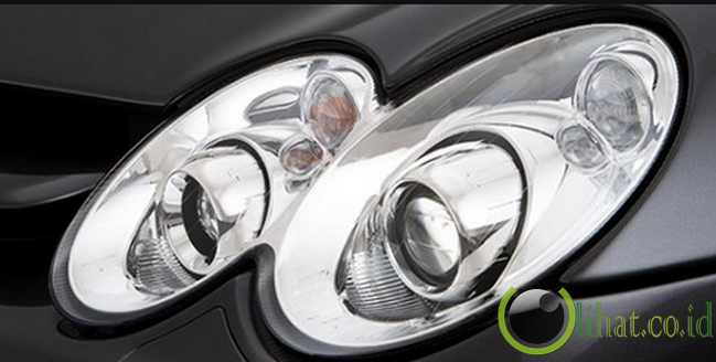 Fascia Mercedes-Benz SLR McLaren yang seakan mengkombinasi tampilan mobil balap F1 ini memiliki bentuk mata oval ganda unik. Sorotan lampu proyektornya semakin perkuat tampilan sporty Mercedes-Benz SLR McLaren pada malam hari.