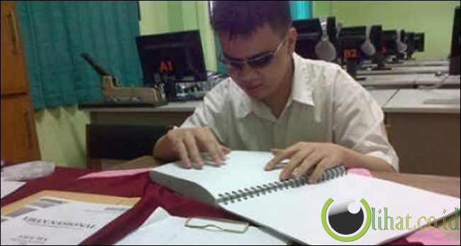 [lihat.co.id] - Siswa tunanetra dan tunarungu di SMA 112 Meruya Utara, Jakbar, mengikuti ujian. Namun, untuk penyandang tunanetra ternyata tidak disiapkan lembar jawaban braille.