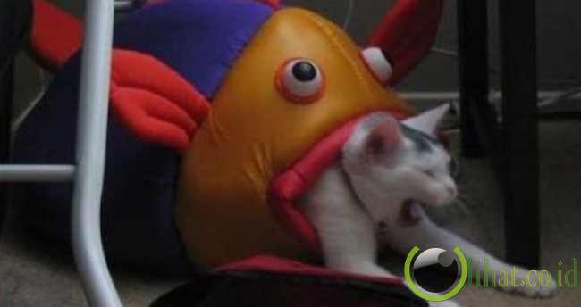 [lihat.co.id] - Bagi kucing, tak ada makanan yang lebih nikmat dibanding ikan. Sebaliknya, tak ada yang lebih menyakitkan dibanding dimakan ikan. Terlihat jelas bagaimana kesedihan kucing pada foto di atas :)