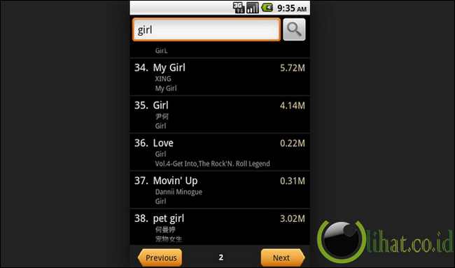 [lihat.co.id] - Aplikasi ini memiliki interface yang mudah untuk dilakukan pencarian musik. Download dan memainkan jutaan lagu MP3 juga bisa dilakukan gratis di public domains.